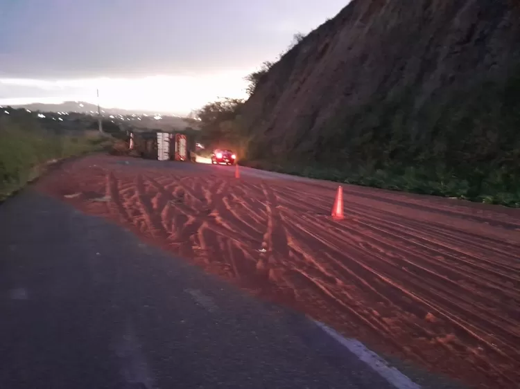 A ocorrência se deu por volta das 04h07, no quilômetro 62 da rodovia, sentido Gravatá/Pombos (na última curva da descida da Serra das Russas), um caminhão tombou e pegou fogo.