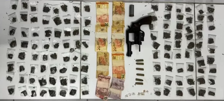 Na abordagem, os militares encontraram um revólver calibre .38 com seis munições e a quantia de R$ 115,00 em espécie. Dentro da mochila abandonada, foram apreendidos 120 ziplocks de maconha, oito pedras de crack e uma munição calibre 12.